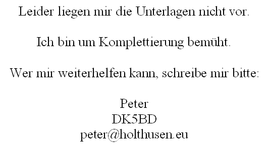 Ich versuche alle Infos zu integrieren Bitte mailt doch Infos, die noch nicht enthalten sind, an Peter, DK5BD: ![]() zurück |